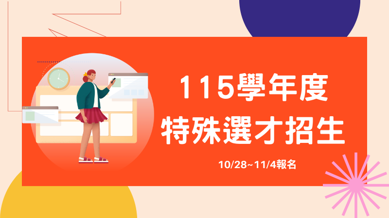115學年度大學部特殊選才招生,報名日期:114年10月28日至114年11月4日