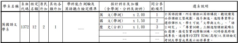※本資訊僅供參考,如有出入,以簡章為準,詳細內容請參閱大學考試入學分發委員會網站,網址: http://www.uac.edu.tw .