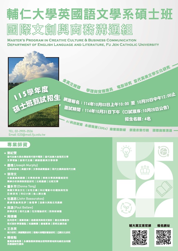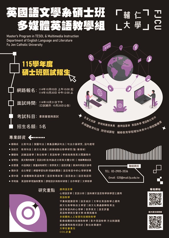 115學年度輔仁大學英國語文學系碩士班甄試口試時程表