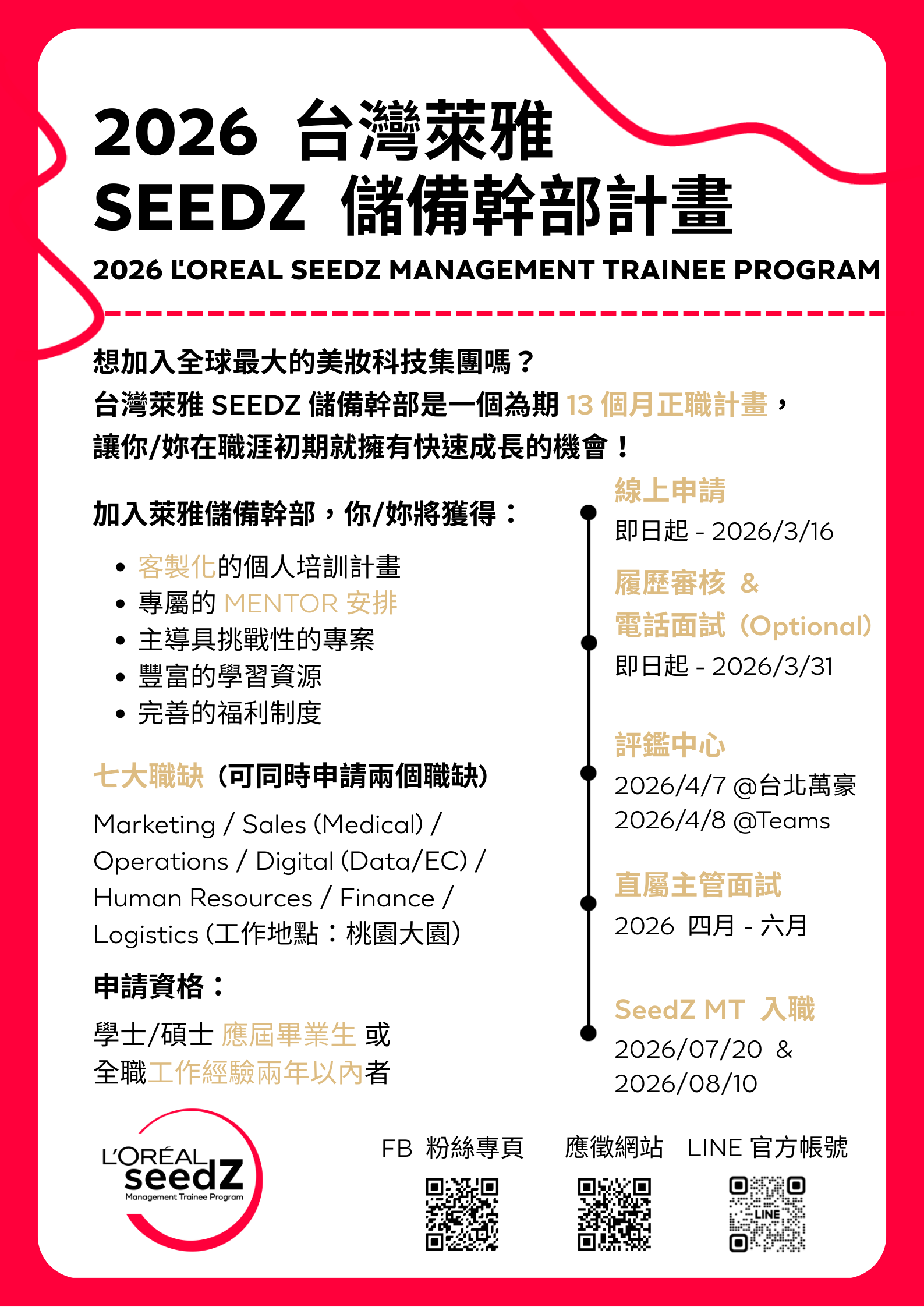 2026 ?Oreal Taiwan SeedZ Management Trainee Program, application deadline: March 16, 2026