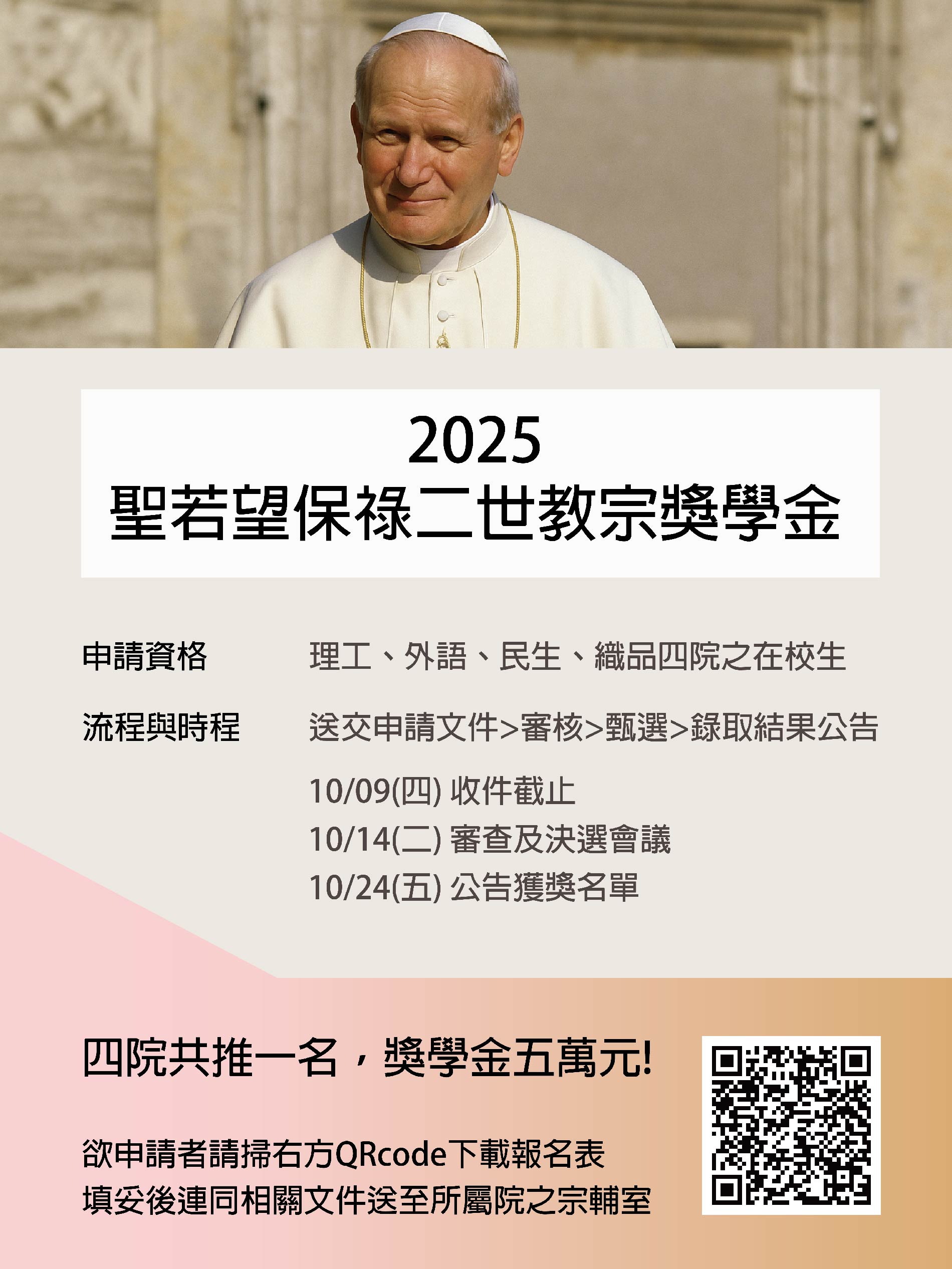 Application of The John Paul II Papal Scholarship, deadline: October 9, 2025